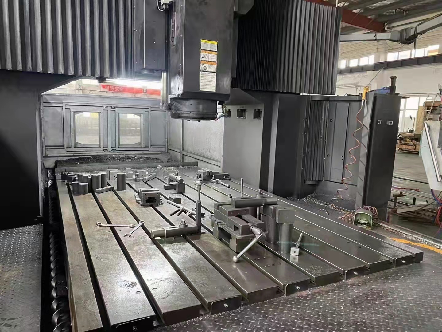 出售臺(tái)灣崴立ML328五面體數(shù)控龍門加工中心,帶鏈條式40把獨(dú)立刀庫 ,帶自動(dòng)銑頭 ,三軸行程3060×2800×800,工作臺(tái)3000×2000,門寬2300,X軸3條導(dǎo)軌。BT50齒輪頭 發(fā)那科MF系統(tǒng),2017年出廠,需要的請(qǐng)聯(lián)系。